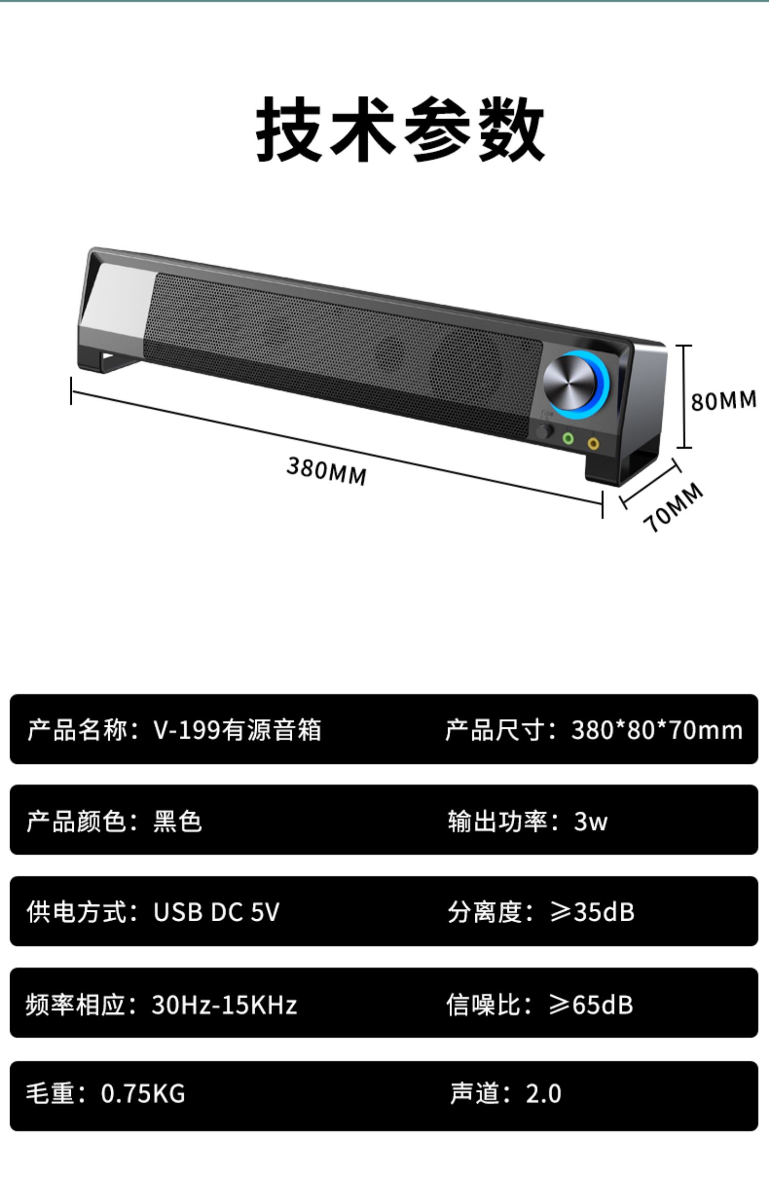 電腦音響台式家用帶麥克風一體有線長條小音箱超重低音